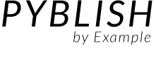 Pyblish by Example is a hands-on introduction to Pyblish using short example programs written like a book - to be read from top to bottom.
